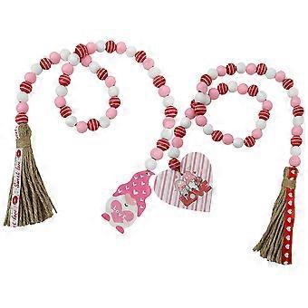 Valentine's Day Tassel Decorations Wooden Bead Garland Hanging for Home 1.6x1.6x85cm 2Pcs