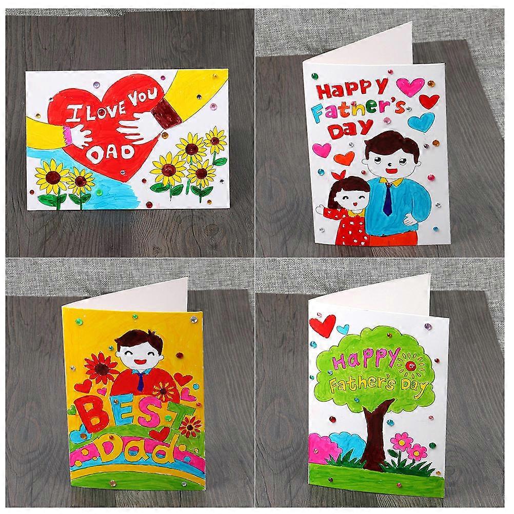 Father's Day Greeting Cards Craft Blank Postcards for Kids Color Filling 17.5x12x0.1cm 4Pcs