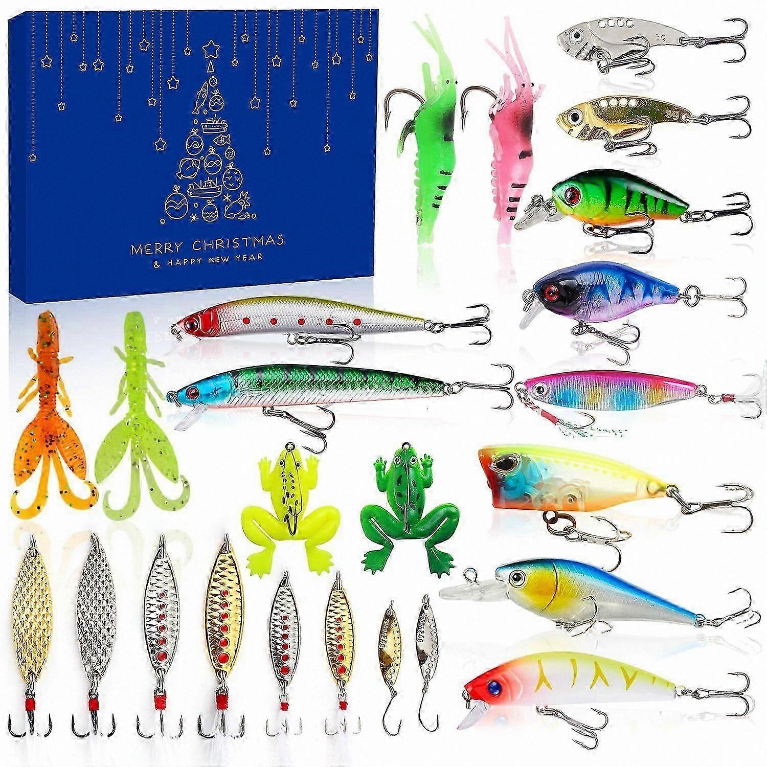 Fishing Advent Calendar 2024: Immerse yourself in the world of angling with our Fishing Lure Advent Calendar! This unique calendar features 24 distinct lures8 hard lures, 6 soft lures, and 10 spoonsproviding a new fishing surprise each day. Turn your holiday countdown into an exciting fishing adventure.Perfect Gift for Anglers: Designed for fishing enthusiasts, this Advent Calendar includes a variety of essential lures such as Popper, Minnow, Crankbait, VIB, and Frog Spoon. Ideal for use in ponds, lakes, or ocean waters, these lures are suited for a range of fishing environments.Premium Quality Lures: Each lure is crafted with sharp hooks, realistic 3D eyes, and lifelike fish patterns to attract bites. Built for performance, these lures are designed to stand out in the water and improve your chances of success.Versatile Fishing Experience: Suitable for both freshwater and saltwater fishing, this collection works well for targeting species like trout and bass. A great choice for anglers of all skill levelsfrom beginners to experienced fishermen.Ideal Christmas Gift 2024: Start the holiday season with a unique gift. The Fishing Lure Advent Calendar makes a thoughtful present for teen boys, dads, grandfathers, and anyone passionate about fishing.
