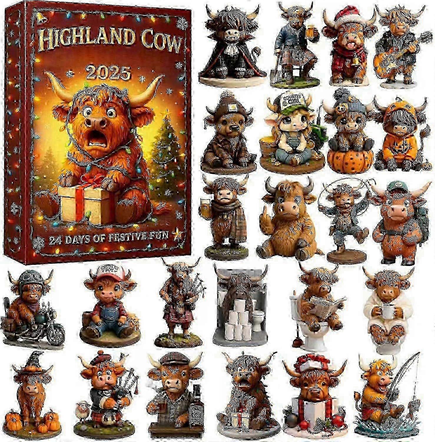 2025 Highland Cow Advent Countdown Calendar, 24-day Christmas Countdown Calendar, Comes With 24 Different 3D Miniature Highland Cow Decorati