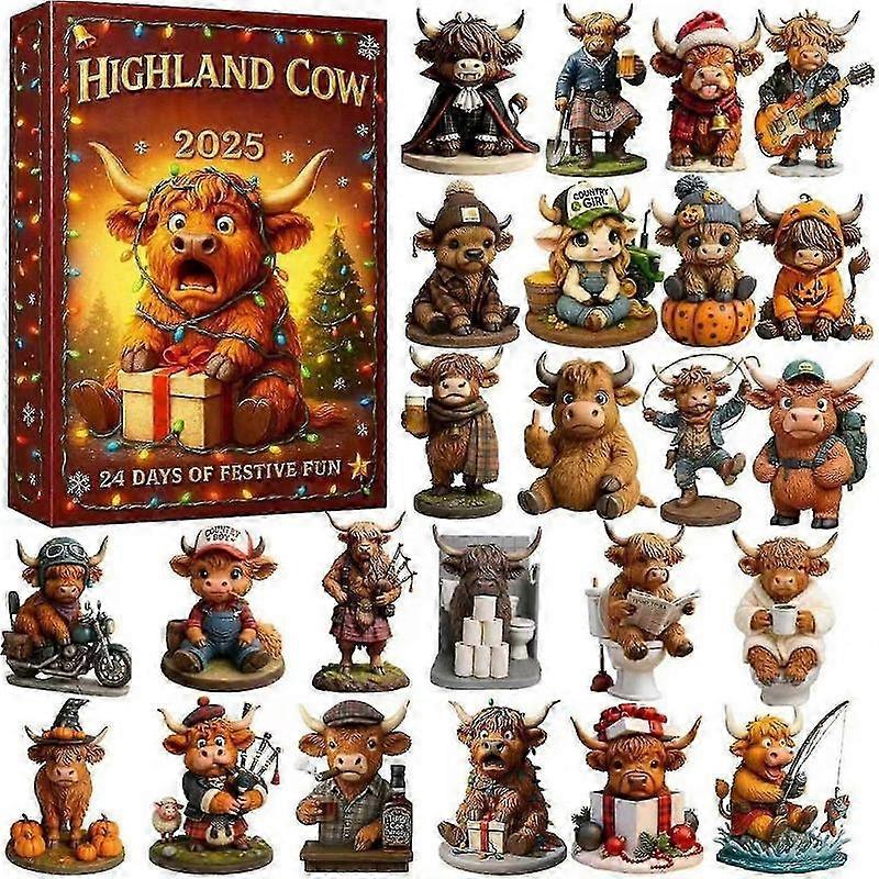 2025 Highland Cow Advent Countdown Calendar, 24-day Christmas Countdown Calendar, Comes With 24 Different 3D Miniature Highland Cow Decorations, Cute
