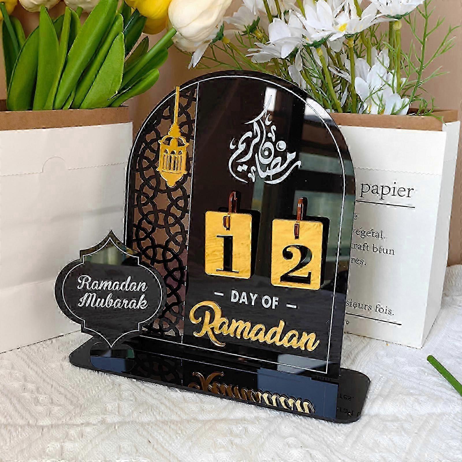 Ramadan Countdown Calendar Eid Mubarak Decor, Mirrored Ramadan Advent Calendar Ornament With 0-9 Cards, Muslim Party Desktop Calendar
