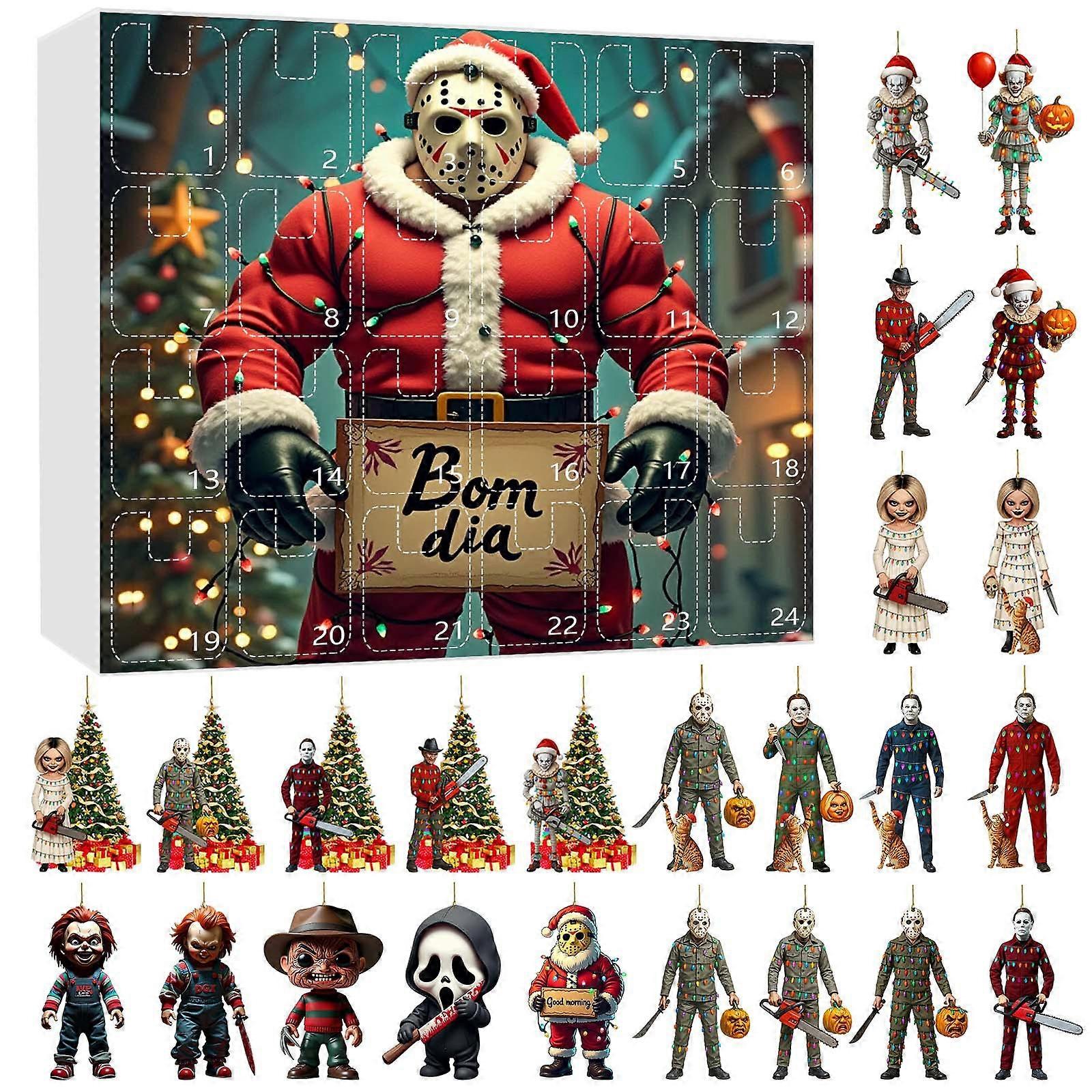 24-Day Countdown Calendar Horror Character Halloween Blind Box Christmas Tree Dress Up Acrylic Flat Ornament