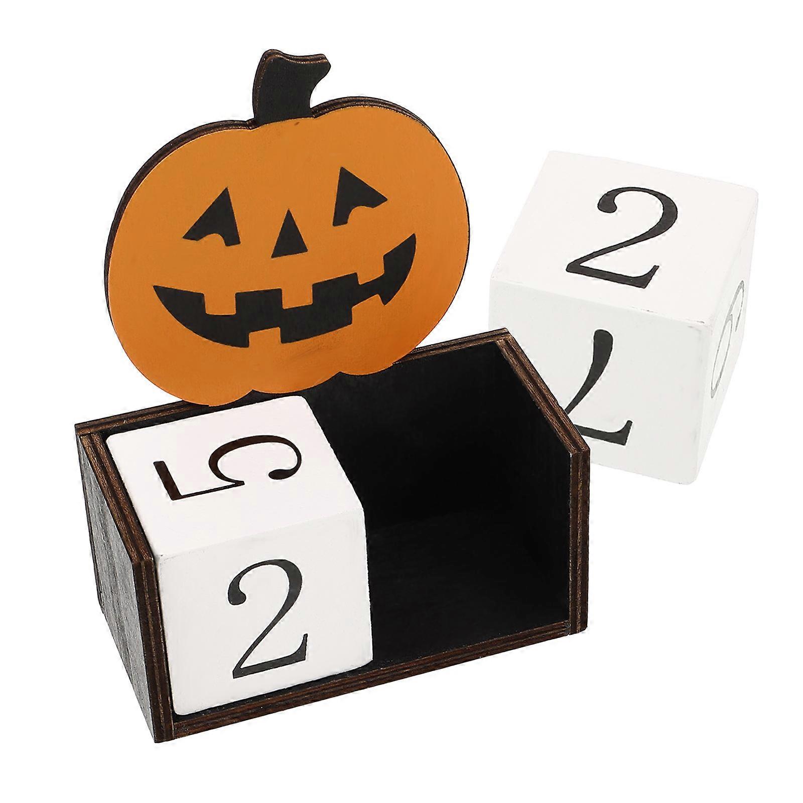 Halloween Theme Desktop Calendar Manual Turning Pumpkin Shape Calendar for Home and Office Decor in Multi Wood Material 1Pack