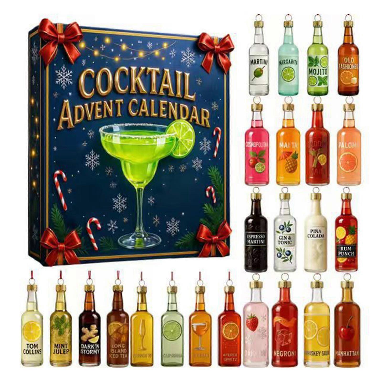 Cocktail Advent Calendar 2025, 24 Days Christmas Countdown Calendar, 2D Acrylic Christmas Tree Decoration, Each Door Opens a New Surprise