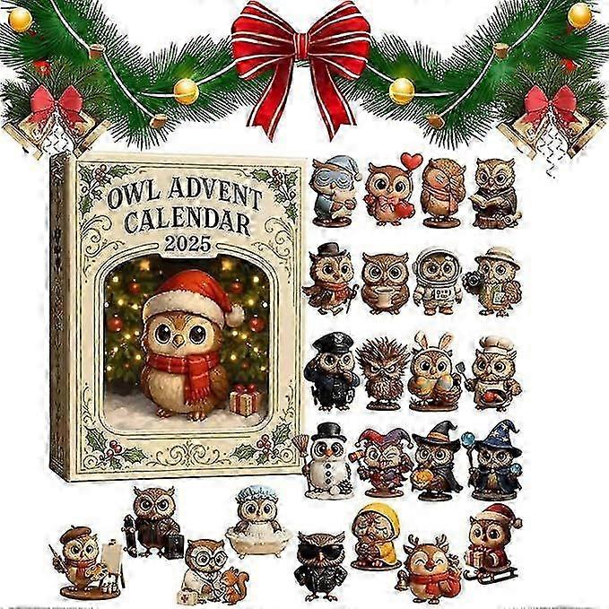 Owl Advent Calendar 2025, 24-Day Christmas Calendar - 24 Gifts with Mini Owl Figures, Owl Surprise Pendant, Unique Home Decoration and Festive Decorat