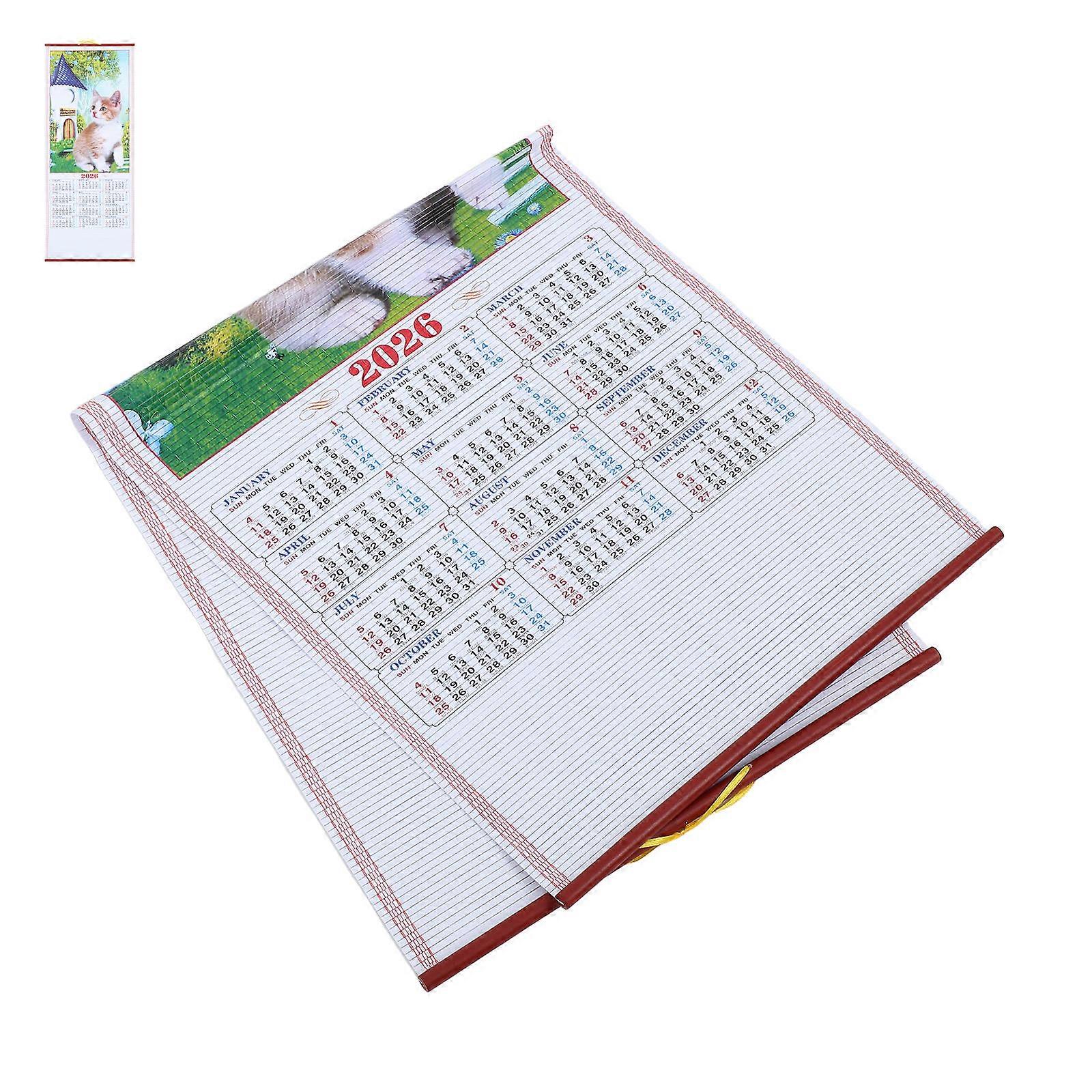 Horse Year Faux Rattan Wall Scroll Calendar for Chinese New Year Home Decoration – Elegant Craftsmanship & Detailed Printing for Living Room Decor