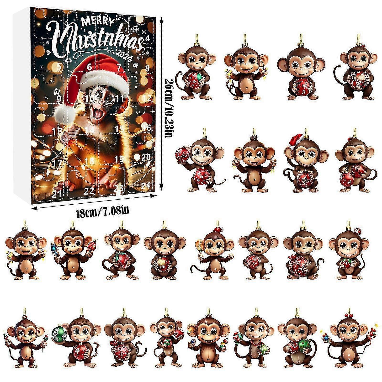 Christmas tree ornaments calendar with 24 days acrylic monkeys