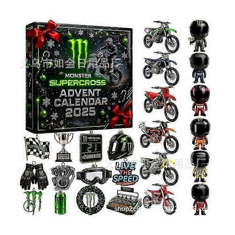 Motorcycle Advent Calendar 2025 - 24 Days Christmas Countdown Calendar Gift for Motorcycle Lovers & Riders, 2D Acrylic Holiday Decor, Christmas Tree