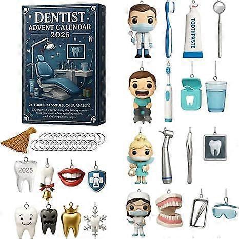 2025 Dentist Advent Calendar, Unique 24 Days Dental Themed Ornaments Set, 2D Acrylic Christmas with Cute Dentist & Tooth Ornaments, Children & Dental