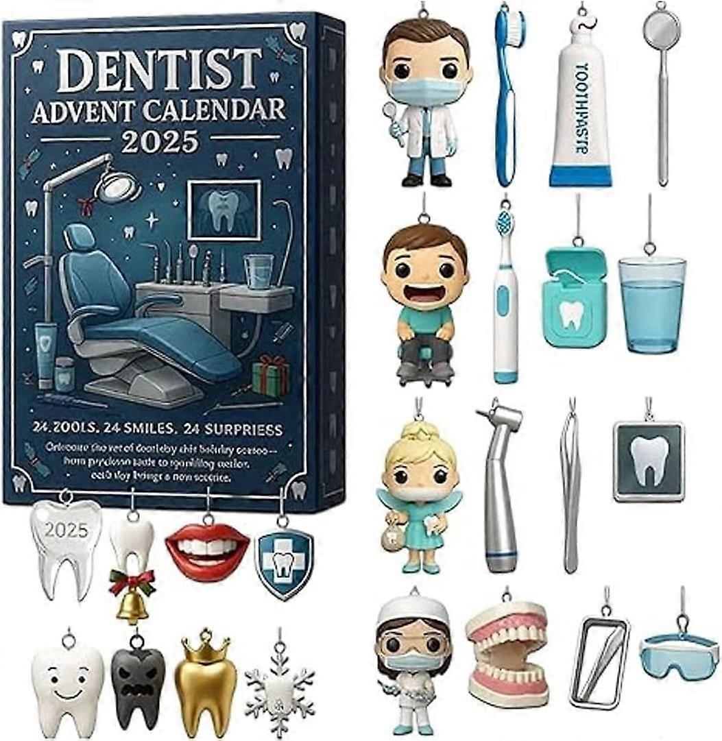 2025 Dentist Advent Calendar, Unique 24 Days Dental Themed Ornaments Set, 2D Acrylic Christmas with Cute Dentist & Tooth Ornaments, Gift for Dental Pr