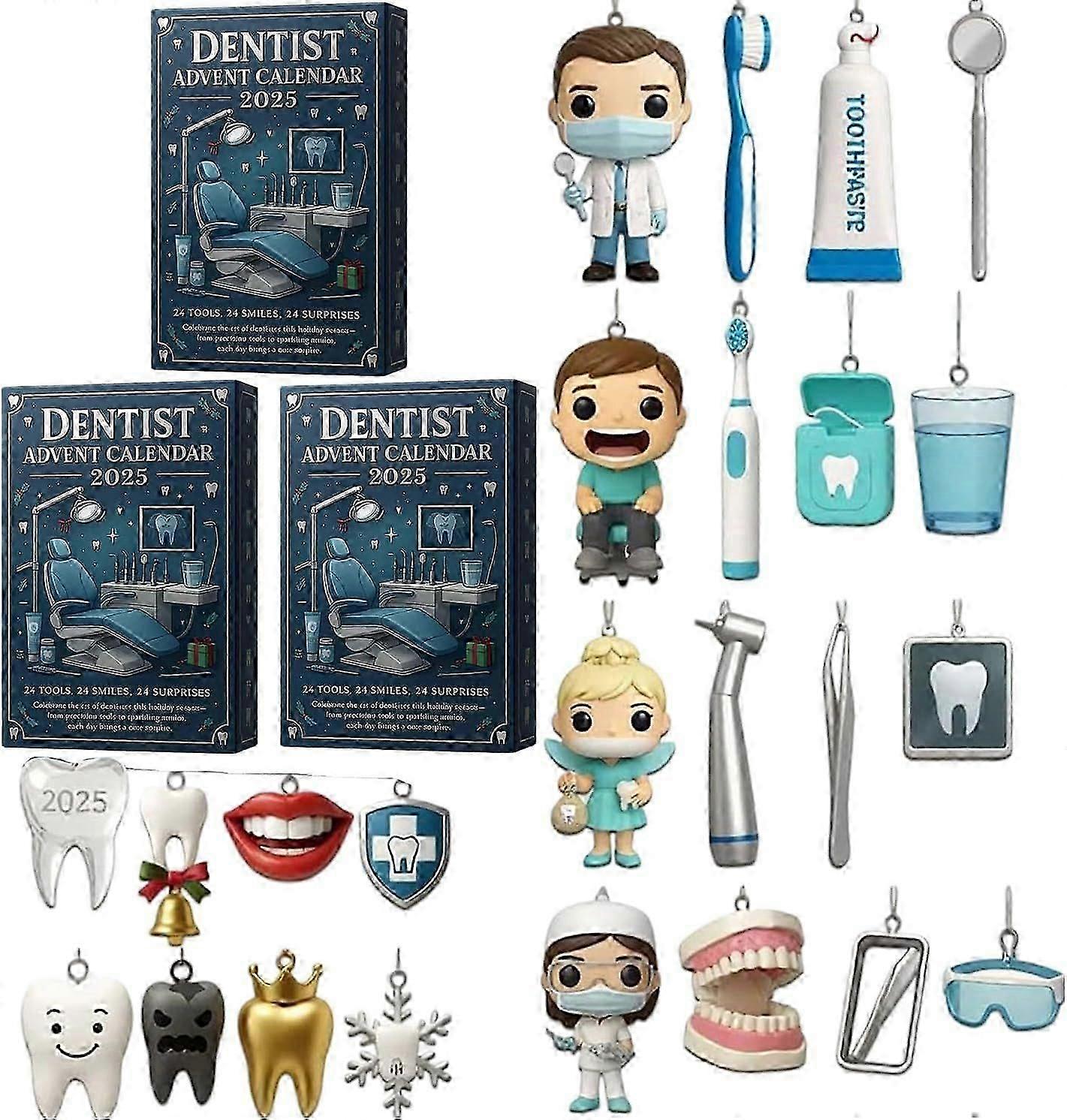 2025 Dentist Advent Calendar, Unique 24 Days Dental Themed Ornaments Set, 2D Acrylic Christmas with Cute Dentist & Tooth Ornaments, Gift for Dental Pr