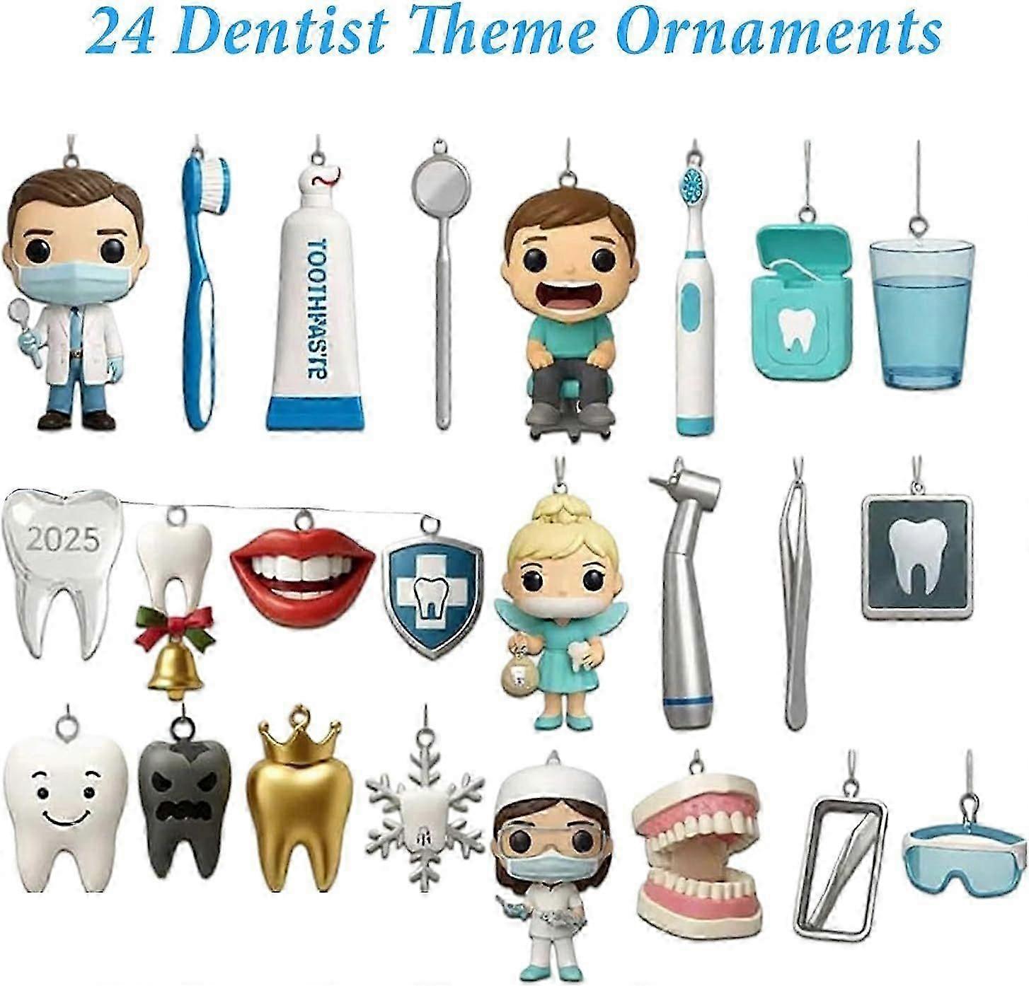 2025 Dentist Advent Calendar, Unique 24 Days Dental Themed Ornaments Set, 2D Acrylic Christmas with Cute Dentist & Tooth Ornaments, Gift for Dental Pr