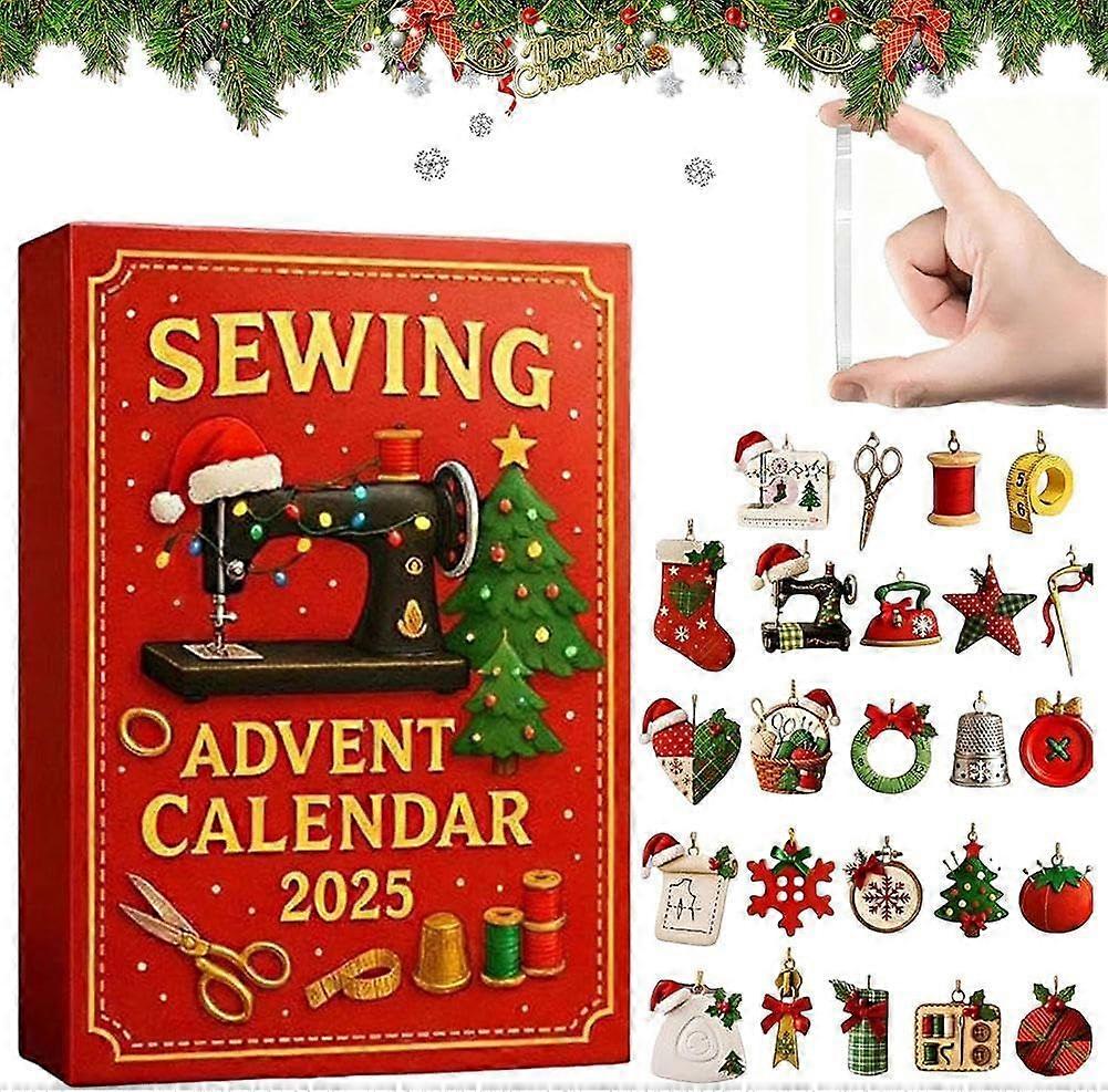 Sewing Advent Calendar 2025, 24-Day Christmas Countdown Calendar, 2D Acrylic Festive Hanging Decoration, Machine Themed Pendant Ornament for Craft Lov