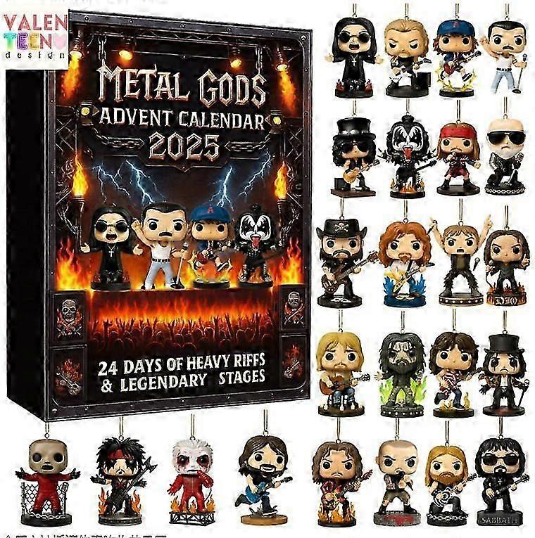 Rock & Metal Advent Calendar 2025-24 Days Countdown Calendar with 2D Flat Acrylic Iconic Music Figures Collectibles, Halloween and Christmas, Gifts fo