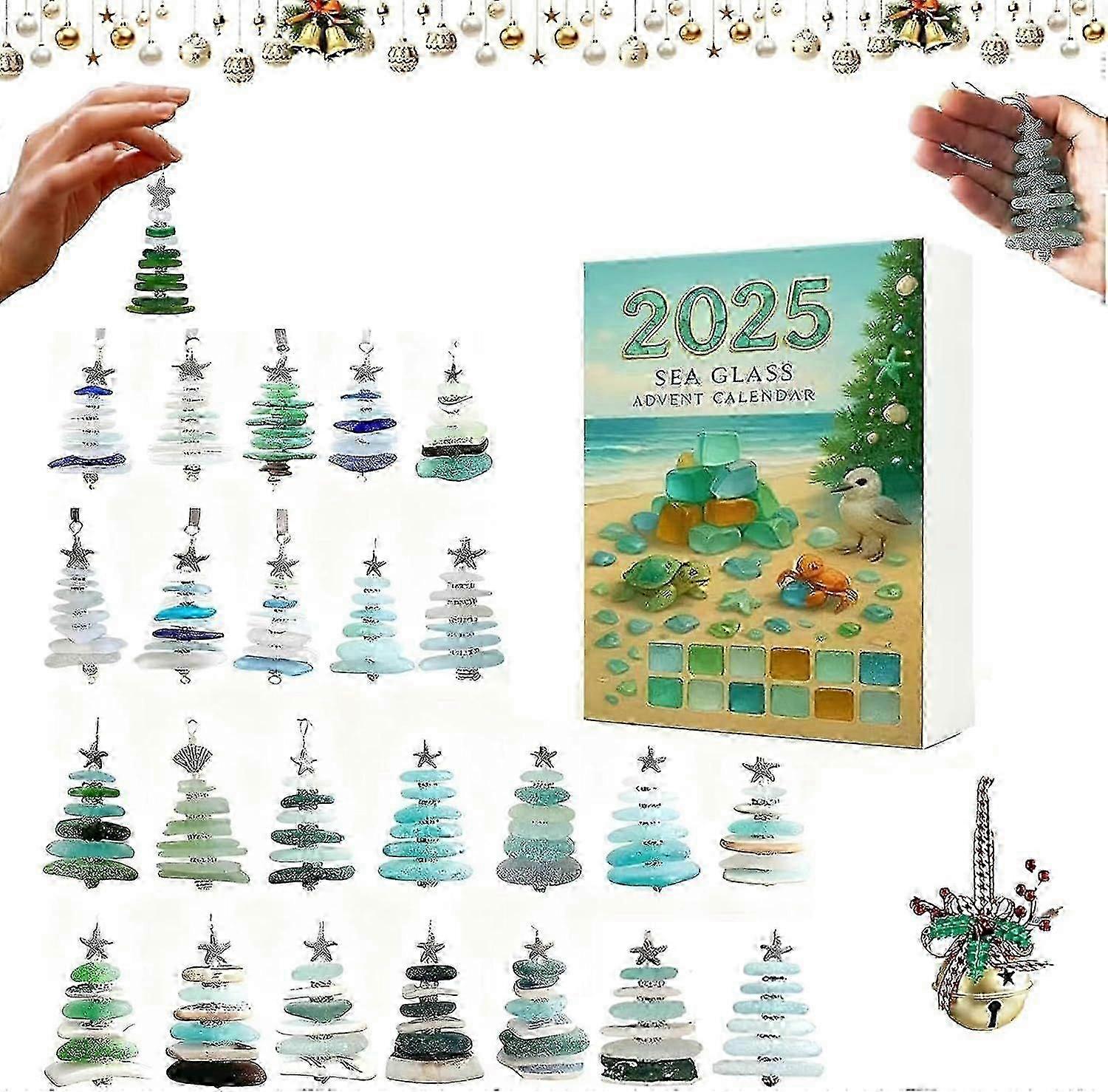 2025 Sea Glass Christmas Tree Advent Calendar, 24 Days Ocean Inspired Christmas Countdown Calendar, Handmade Mini SeaGlass Christmas Tree Decorations