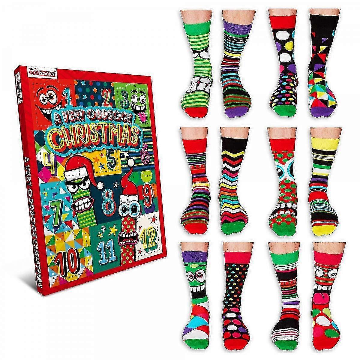 UNITED ODDSOCKS MEN'S 12 DAYS OF CHRISTMAS SOCK ADVENT CALENDAR Purchase this exclusive advent calendar from United Oddsocks for Christmas time. This sock advent calendar is unique in design and a wonderful way to celebrate Christmas, with an advent calendar like nothing we have ever seen before Designed wonderfully with Christmas designs in mind you can open each door for 12 days and reveal a variety of funky socks that will adorn your feet. Mix and mismatch these socks and create your own Christmas display on your feet, from spots, stripes, and humorous characters you can be sure to have the funkiest socks in town. Gift this advent calendar to your Son, Brother, Dad or Grandad just in time for Christmas and let them have a very odd sock Christmas UK 6-11, EUR 39-46, US 7-12 These socks are made from 78% Cotton, 21% Polyamide, 1% Elastane. Shop our Christmas shop for more advent calendars from award winning brands. [/advent-calendars. html] Note: Due to the light and screen setting difference, the item's color may be slightly different from the pictures. Please allow slight dimension difference due to different manual measurement. Sold by-Minnanxin