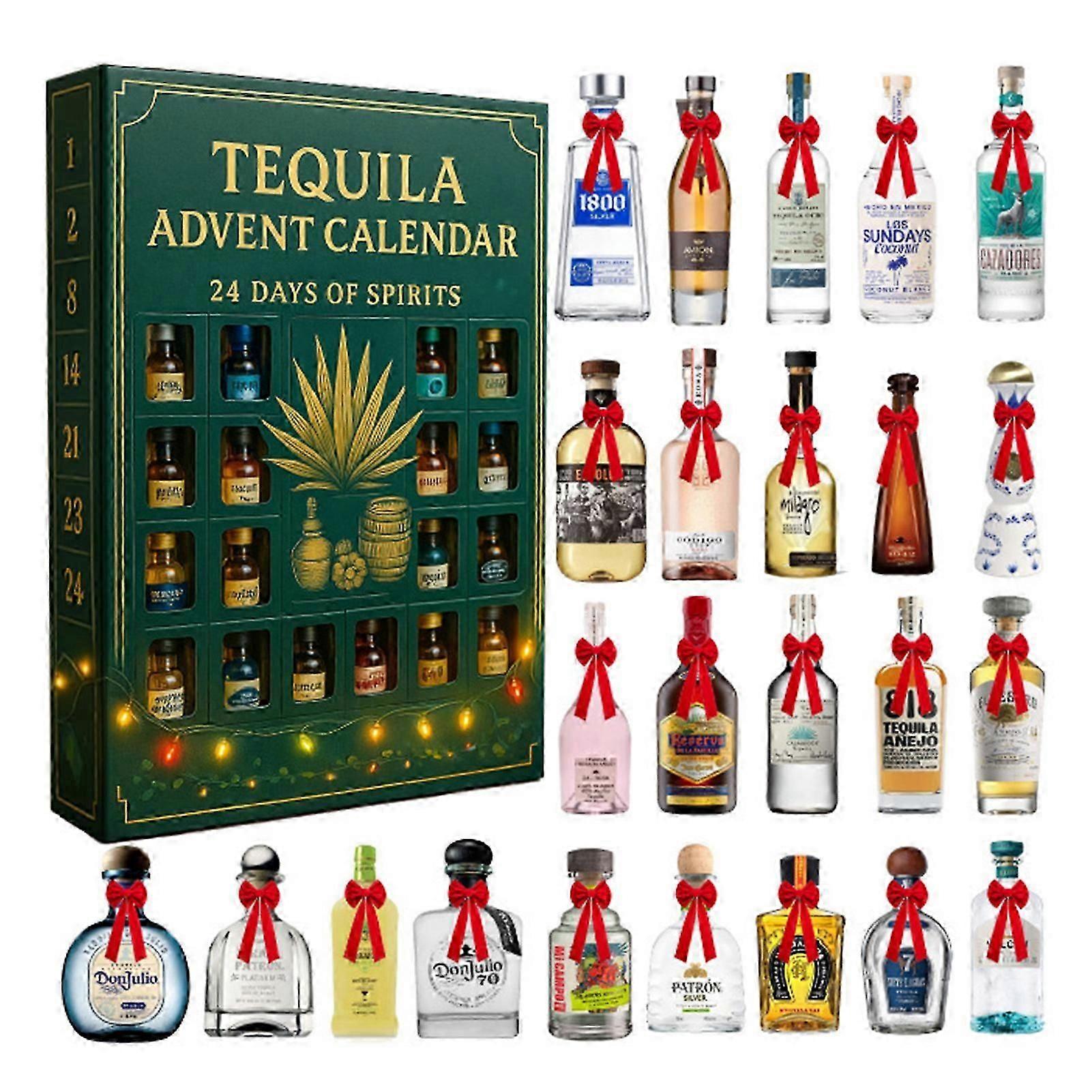 Tequila Advent Calendar 2025, 24 Days Christmas Countdown Calendar with 24pcs Tequilas, 2D Acrylic Spirits Ornaments Holiday Decor Gift