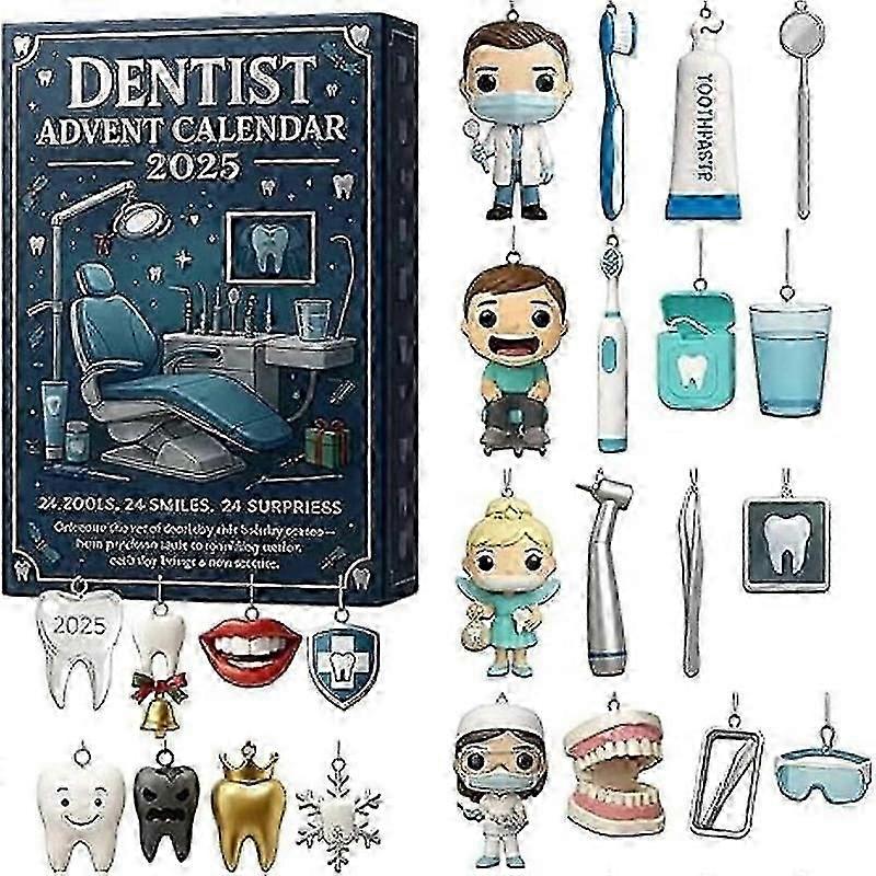 2025 Exclusive Dental Advent Calendar: Tailored for dental enthusiasts, this 2025 holiday advent calendar brings 24 days of dental-themed surprises to the Christmas season. It adorns dental clinic receptions, home festive corners, or works as unique Christmas decor, infusing spaces with a professional yet warm holiday vibe and offering oral health practitioners exclusive festive ritual 24 Dentist Theme Ornaments: 24 high-quality 2D acrylic ornaments create a fun teeth "transformation journey" from clean bright white healthy teeth to dark cavity-simulating shapes, finally to sleek eye-catching gold teeth. Each ornament is not just a festive decor but also a great way to start dental health talks, blending professional knowledge with festive fun Premium Christmas Decorations: This 2025 dental advent calendars ornaments are made of high-durability, finely detailed acrylic. They keep vivid colors and intact shapes even after multiple holiday uses, no wear or fading worries. As part of high-end advent calendars, each adds unique professional charm and delicacy to Christmas trees or dental clinic decor Exclusive Gift for Dental Practitioners: Ideal for dentists, dental hygienists, students, or dental enthusiasts, this advent calendar stands out among Christmas options for its dental industry focus. Its a thoughtful way to thank dental teams a practical holiday decor and a meaningful keepsake carrying sincere intentions Daily Unboxing Fun: Unlock a new dental-themed ornament daily in December, awaiting Christmas with unboxing excitement. This adult advent calendar mixes holiday joy with dental practitioners professional pride, more interactive than ordinary 2025 calendars. It subtly conveys dental care importance in a light festive mood, making each countdown fun