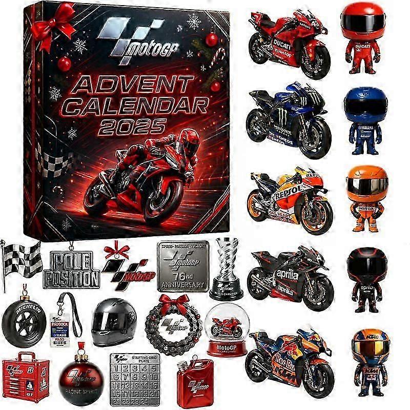 Ημερολόγιο Χριστουγέννων 2025 - Ημερολόγιο αντίστροφης μέτρησης 24 ημερών, κουτί τυφλού για αγώνες μοτοσικλέτας, ακρυλικά στολίδια, διακόσμηση χριστουγεννιάτικου δέντρου για μωρό