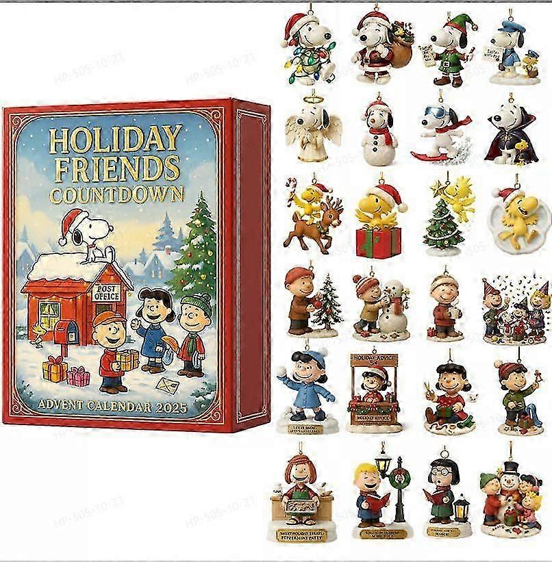 Ημερολόγιο Χριστουγέννων Advent 2025 - Ημερολόγιο αντίστροφης μέτρησης 24 ημερών Snoopy Χριστουγεννιάτικο κουτί τυφλού ακρυλικά στολίδια, διακόσμηση χριστουγεννιάτικου δέντρου για μωρό