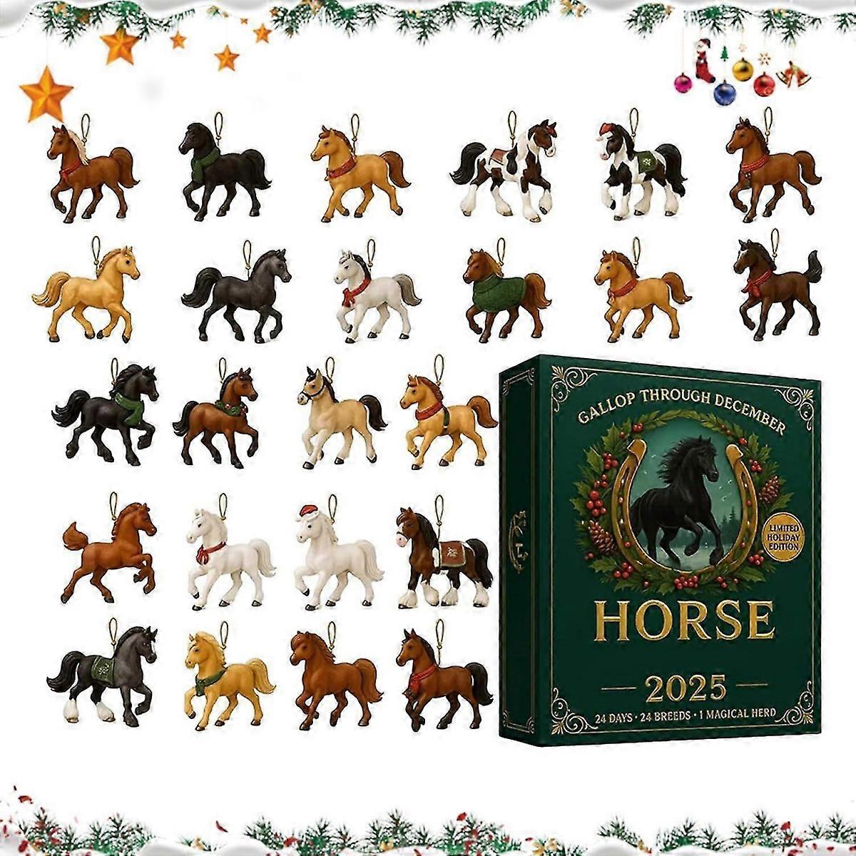 Horse Themed 2025 Christmas Advent Calendar, 24 Days Countdown Calendar Horse Pendant - for Bedroom Party Entrance Window Tree Riders