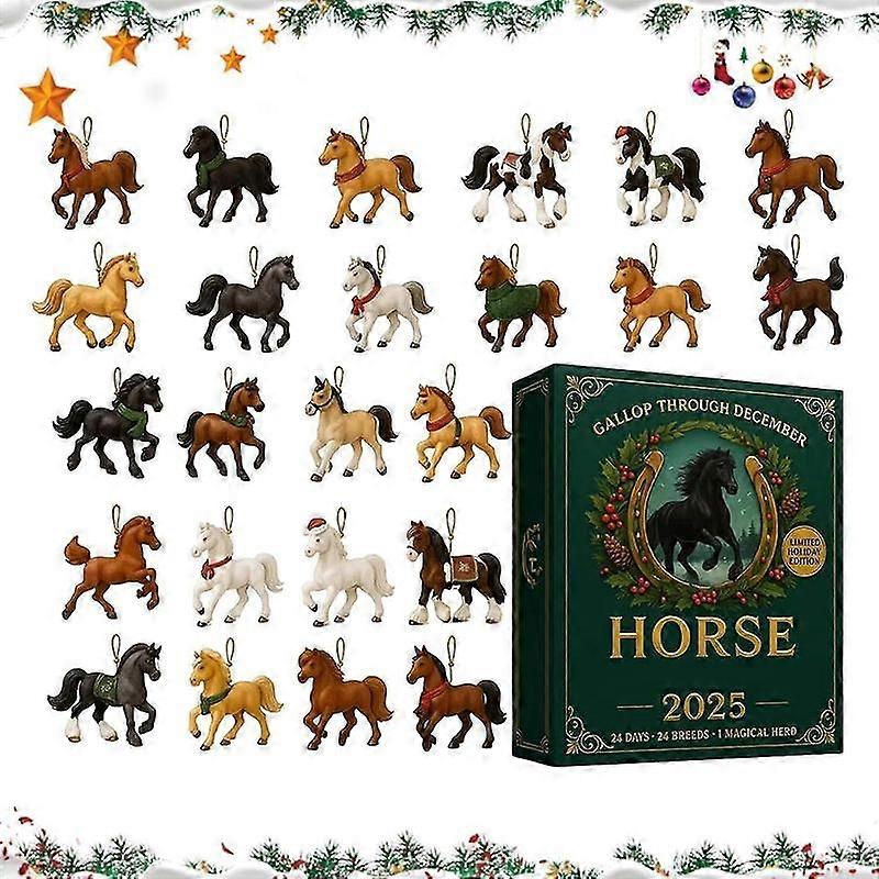 Horse Themed 2025 Christmas Advent Calendar, 24 Days Countdown Calendar Horse Pendant - for Bedroom Party Entrance Window Tree Riders