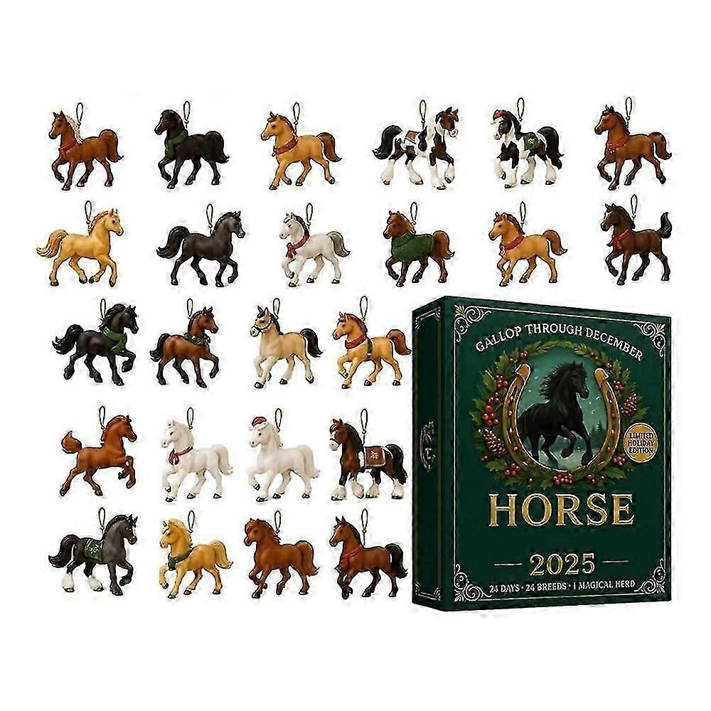 Horse Themed 2025 Christmas Advent Calendar, 24 Days Countdown Calendar Horse Pendant - for Bedroom Party Entrance Window Tree Riders