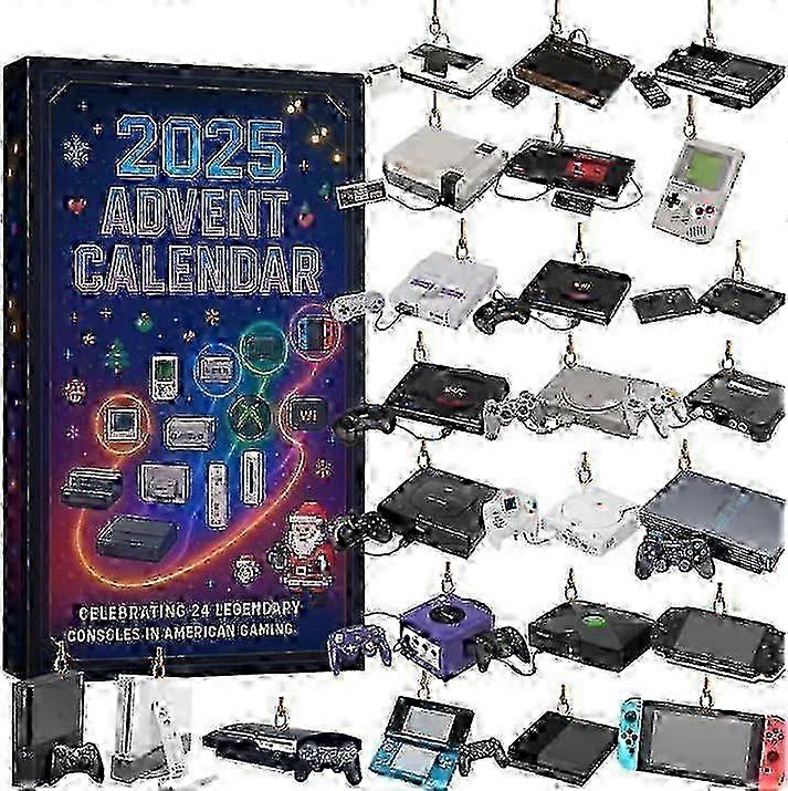 2025 Gaming Console Advent Calendar, 24 Legendary Video Game Systems Collection, Retro Gaming Christmas 2D Acrylic Ornaments, Holiday Gift f