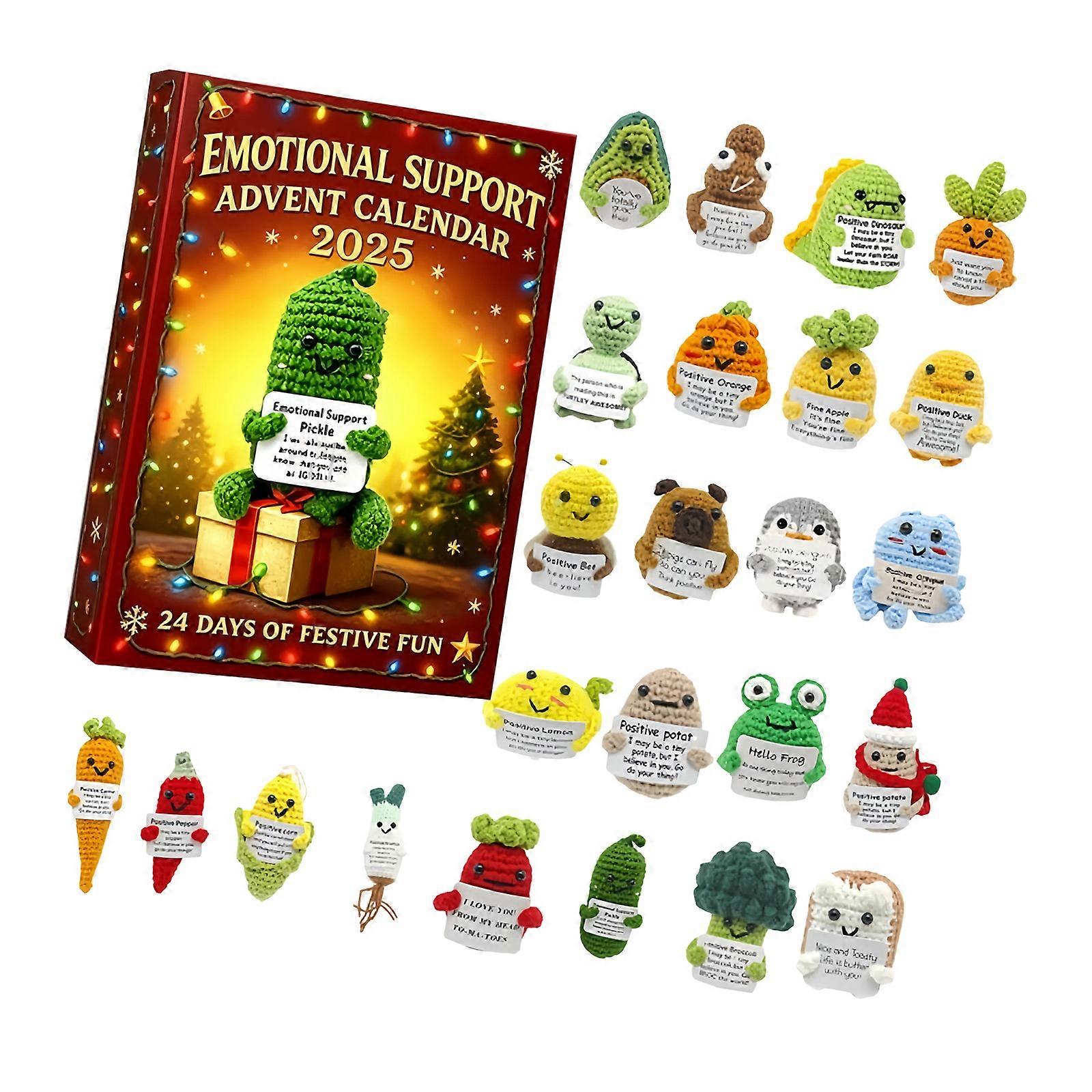 Daily Stress Relief Advent Calendar 2025 24 Piece Crochet Ornament Set Acrylic Christmas Decoration Emotional Support G Multicolor