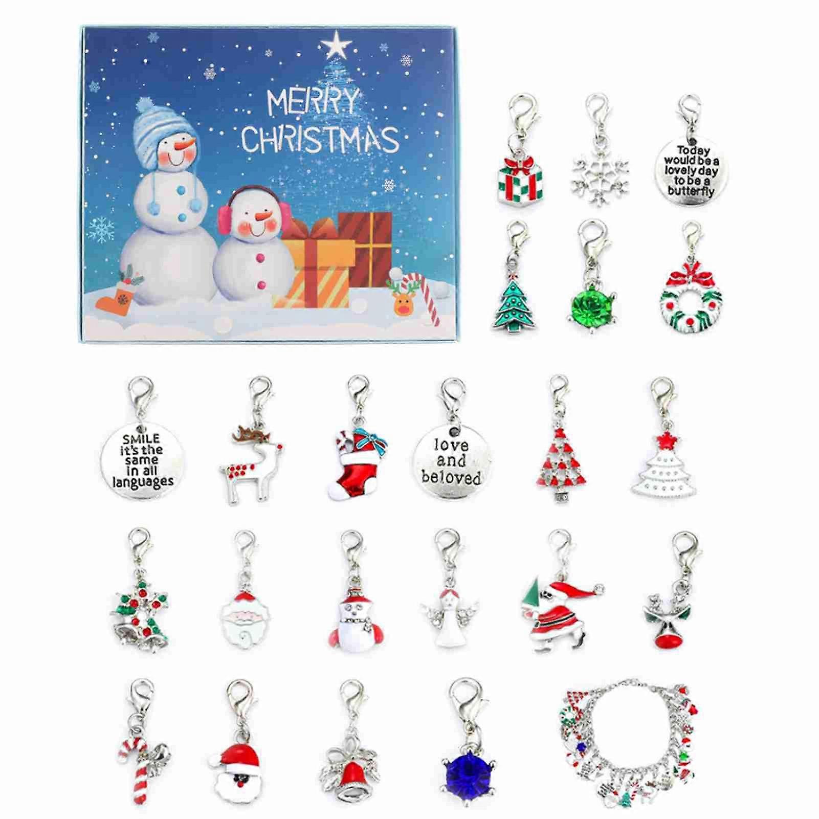 Advent Calendar Xmas Countdown Calendar Xmas Themed DIY Charm Bracelet Making Kit Jewelry Gift Set