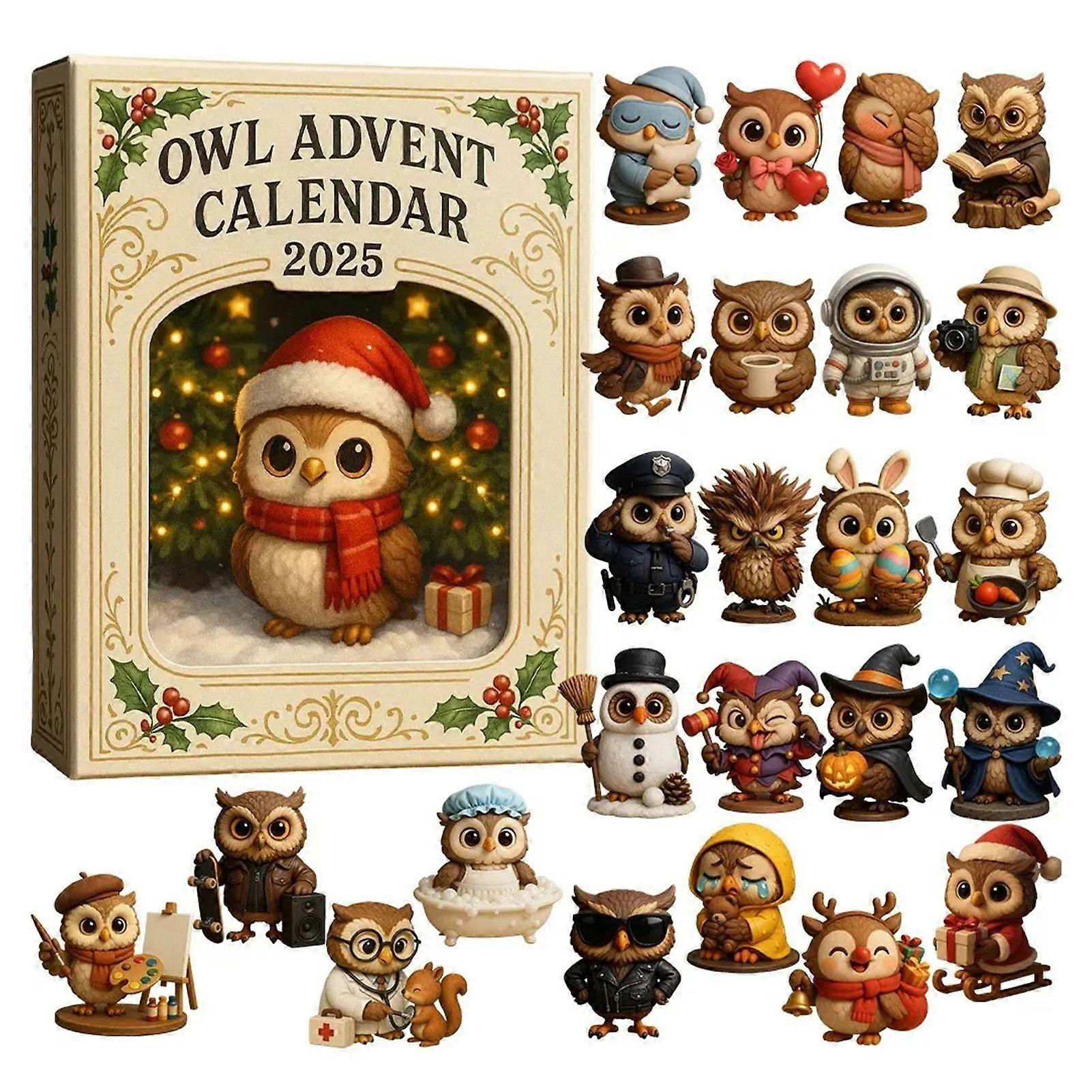 Owl Advent Calendar 2025 24 Days Acrylic Owl Pendants Christmas Countdown Calendar Animal Themed Xmas Tree Hanging Decoration Set