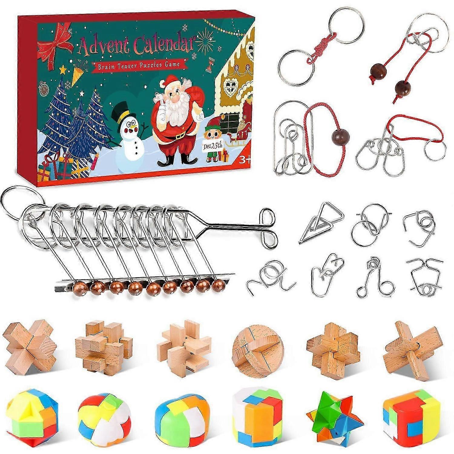 2025 Brain Teaser Advent Calendar - 24 Days of Metal Wire & Wooden Puzzle Toys for Adults, Kids, Teens, Boys & Girls, Christmas Countdown Calendar wit