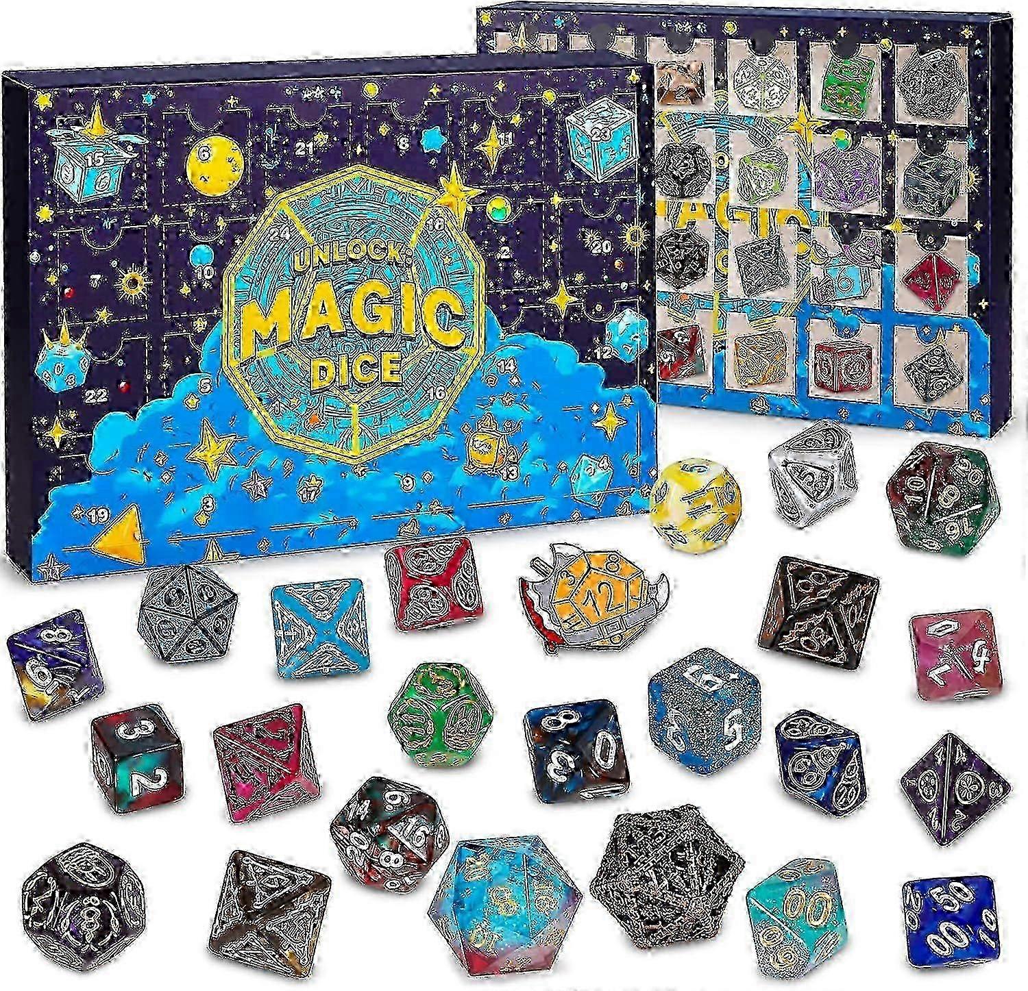 Dice Advent Calendar 2025, Polyhedral Dice, 24Days Christmas Countdown Calendar, Christmas Gifts, 24-Hole Advent Calendar Dice Box with Badge
