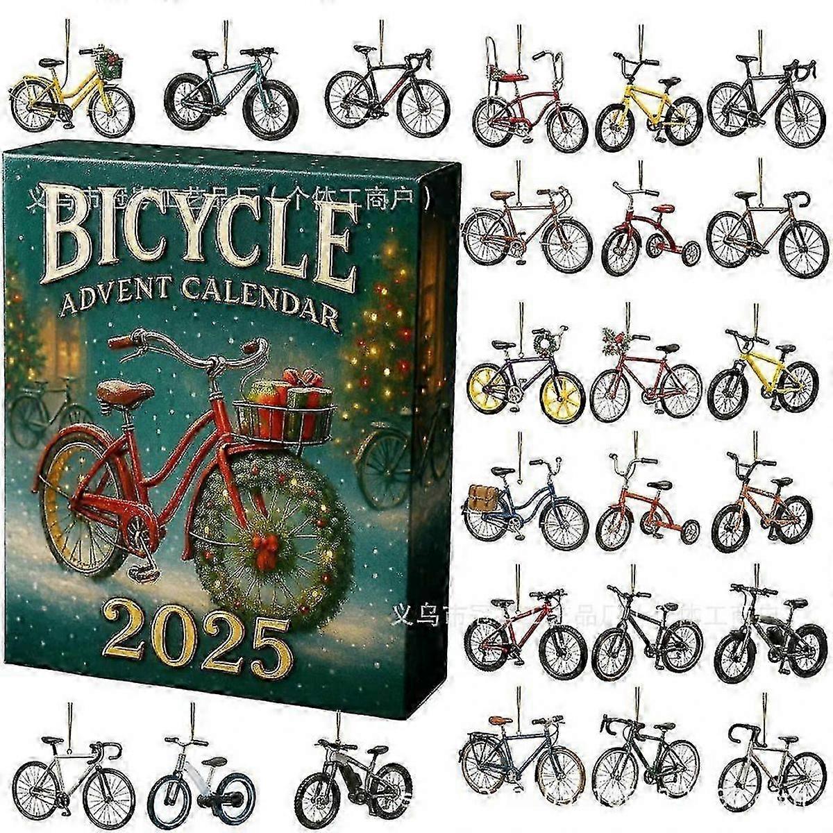 Bicycle Adventure Every Day Celebrate the countdown to Christmas with our Bicycle Themed Advent Calendar 2025. Each of the 24 windows reveals a unique surprise, showcasing different bicycles, from vintage cruisers to modern road bikes. Perfect for bike enthusiasts and collectors!<br> Perfect Gift for Cyclists Looking for the ideal holiday gift for bike lovers? This bike advent calendar brings daily joy and excitement to cycling enthusiasts, bike collectors, and those who appreciate the thrill of adventure on two wheels.<br> Celebrate the Spirit of Biking Featuring an exciting collection of bike designs, the Bicycle Advent Calendar blends the spirit of biking with the fun of the Christmas countdown. Whether you're a road biker or a mountain bike fan, this calendar is a must-have!<br> Quality Design and Details Crafted with care, this 2025 bike-themed advent calendar is made from durable materials. Each bike figurine is carefully designed with intricate details that reflect the beauty of biking culture.<br> Versatile and Unique Decor This bike advent calendar makes for an excellent addition to any home or office. Its not just a countdown to Christmasits a stunning bicycle collectible and a great conversation starter for bike lovers.