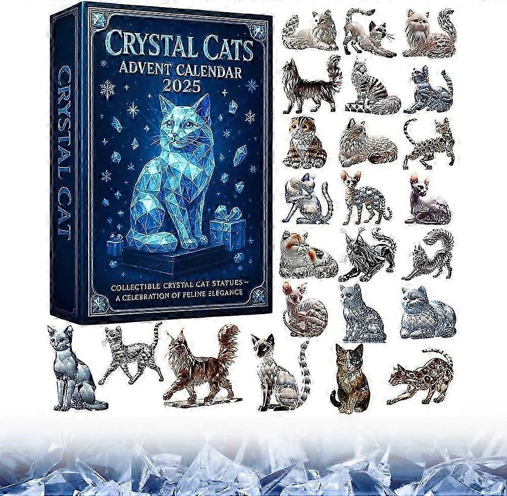 Crystal Cats Advent Calendar 2025, Christmas Countdown Calendar with 24pcs 2D Acrylic Crystal Cats Ornaments, Christmas Tree Decorations, for Cat PetZ