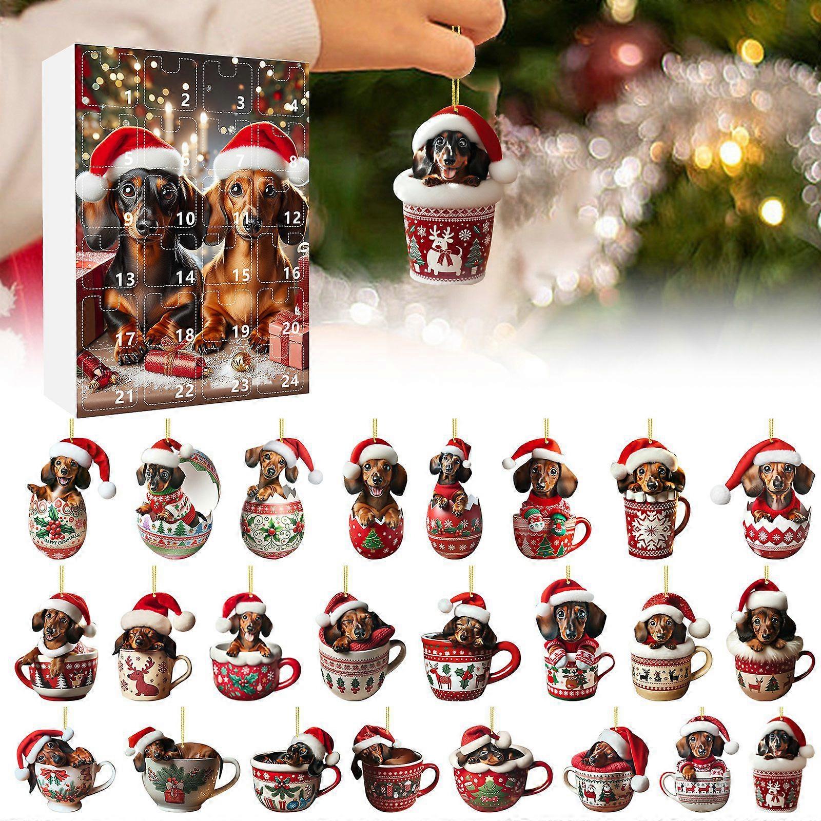 Advent Calendar 2024 Women 2024 Festival Vacation Advent Calendar 24 Day Christmas Countdown Calendar Dachshund Pendant With Santa Hats 2D Xmas Tree C