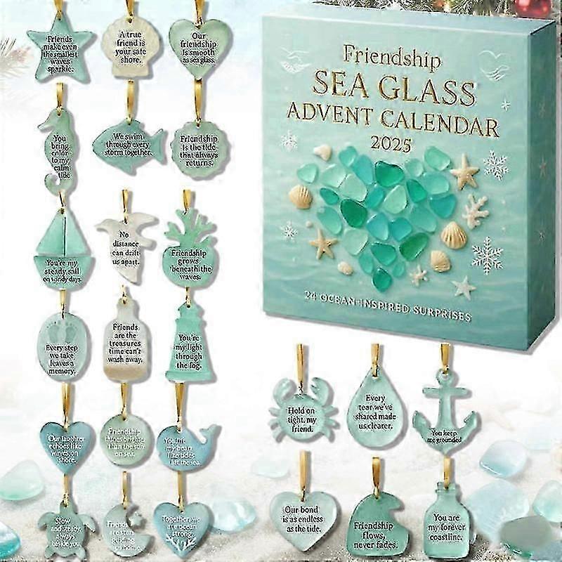 Friendship Sea Glass Advent Calendar 2025, 24 Days Christmas Countdown Calendar with Ocean-Inspired Surprises, Unique Christma Tree Ornaments Gift for