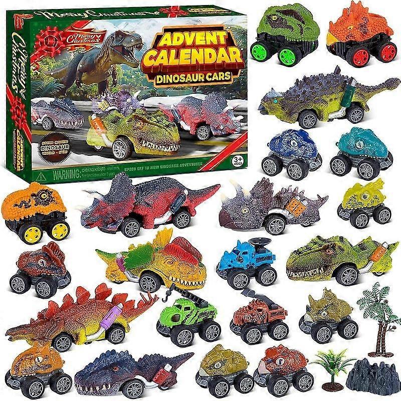 2025 Advent calendar Dinosaur Cars Advent Calendar for Boys Kids, 24 Days Monster Truck Christmas Countdown Calendar Pull Back Cars Set for Boys