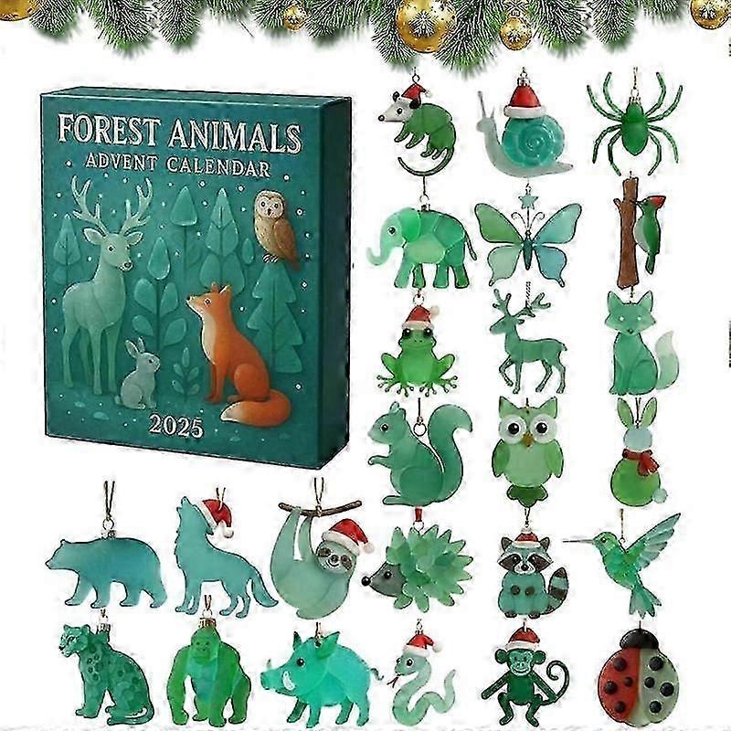 Forest Animals 2025 Advent Calendar, 24 Days Woodland Theme Christmas Countdown, Cute 2D Acrylic Forest Animals Theme Calendar Decor, Holiday Decor fo