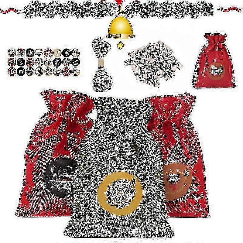 Advent Calendar, 24 Christmas Gift Bags, Christmas Pouch, Fillable Fabric Bags, Gift Bags With Number Tags And 24 Wooden Clips, For Diy Chri