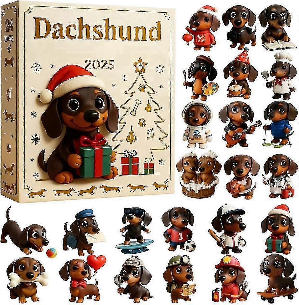 Dachshund Advent Calendar 2025 | 24 Days Christmas Ornament Countdown Calendar with 2D Acrylic Cute Dachshund Hanging Pendant Christmas Tree Decoratio