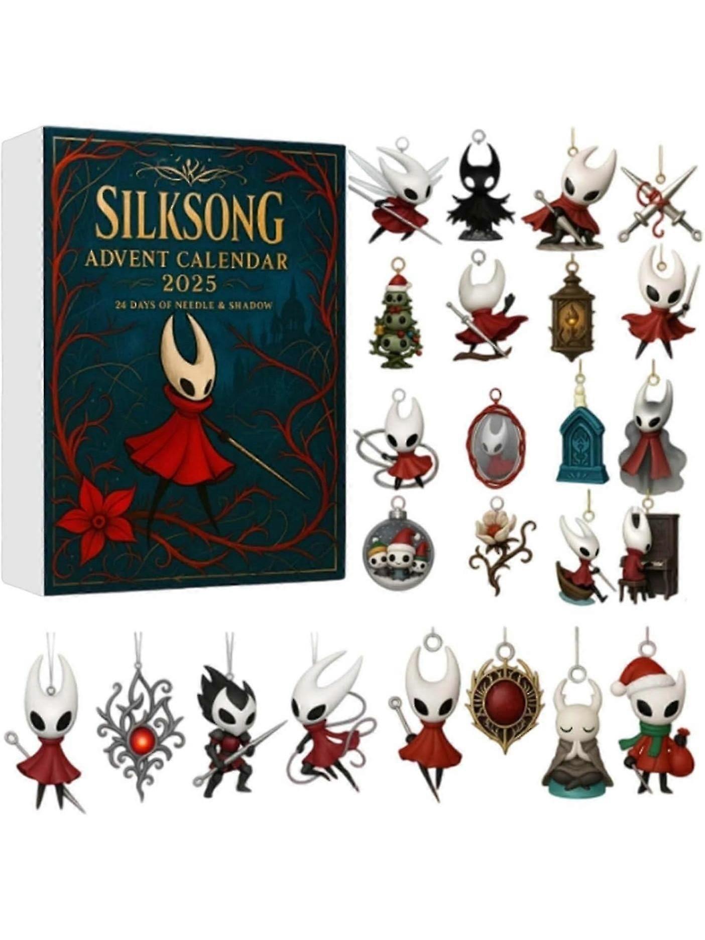 Experience the Magic of Hallownest This Holiday Season!Transform your Christmas countdown into an enchanting journey through the mystical world of Hollow Knight Silksong! Each day leading up to Christmas brings a new surprise with these beautifully crafted 2D acrylic ornaments featuring your favorite characters from the highly-anticipated game. Imagine waking up each morning to discover another piece of the Silksong universe - from Hornet's graceful poses to the mysterious new creatures awaiting discovery. These delicate yet durable hanging decorations capture the gorgeous art style of the game in stunning detail, bringing the magic of Hallownest directly to your Christmas tree.Why This Advent Calendar Captures Hearts:Daily Gaming Thrills - Experience the excitement of 24 days of Silksong-themed surprises, perfect for building anticipation both for Christmas and the game's releasePremium Collectible Quality - Each ornament features laser-cut acrylic with vibrant printing that does justice to the game's beautiful artworkVersatile Display Options - Use them as tree decorations, window displays, or keep them as permanent collectibles for your gaming spacePerfect for Superfans - Whether you're a longtime Hollow Knight enthusiast or new to the series, these ornaments make every day in December special