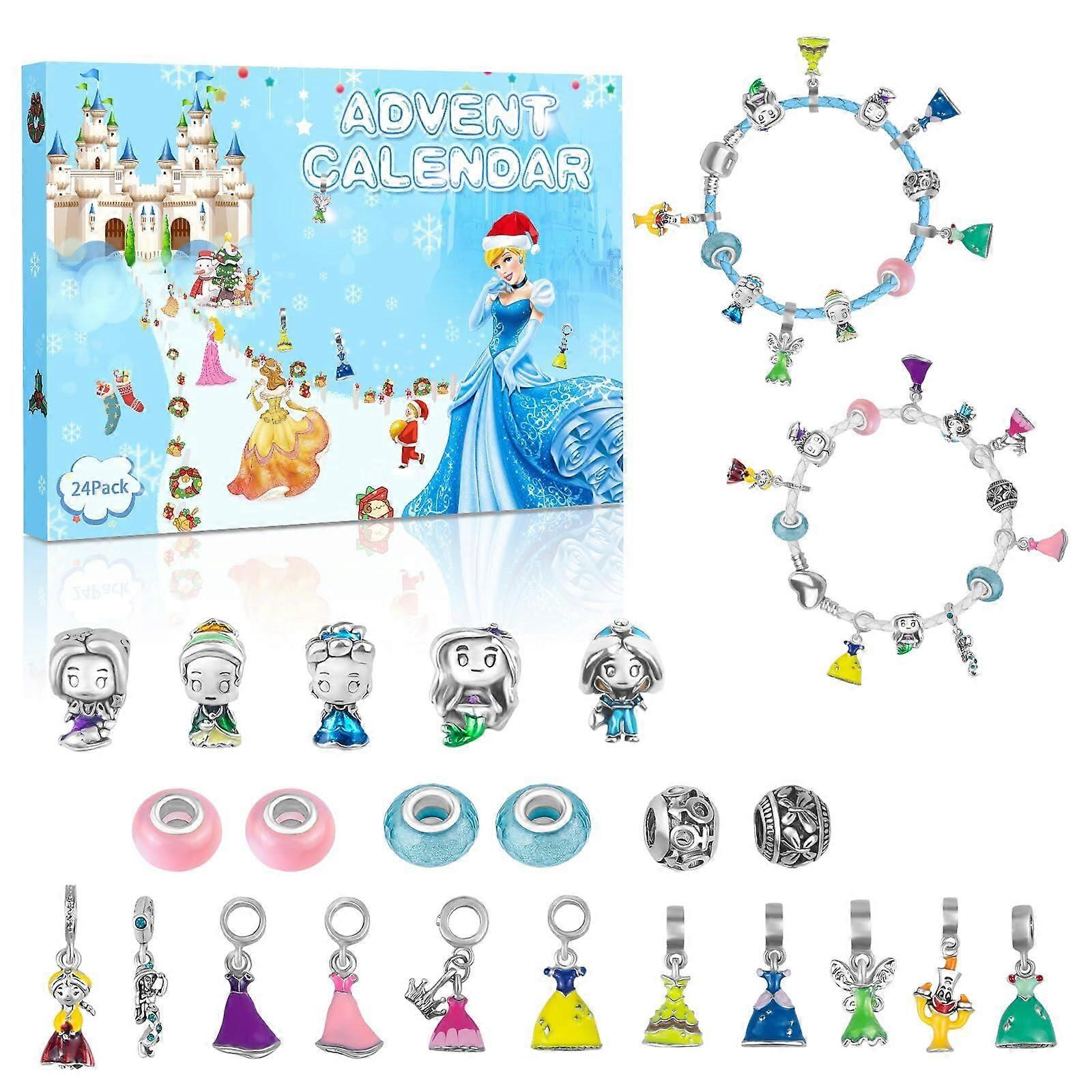 2025 Princess Advent Calendar for Teen Girls - 24 - Day Christmas Countdown with 2 DIY Bracelets & 22 Charms, Ideal Xmas Gift for 6 - 18 Year Old Girl
