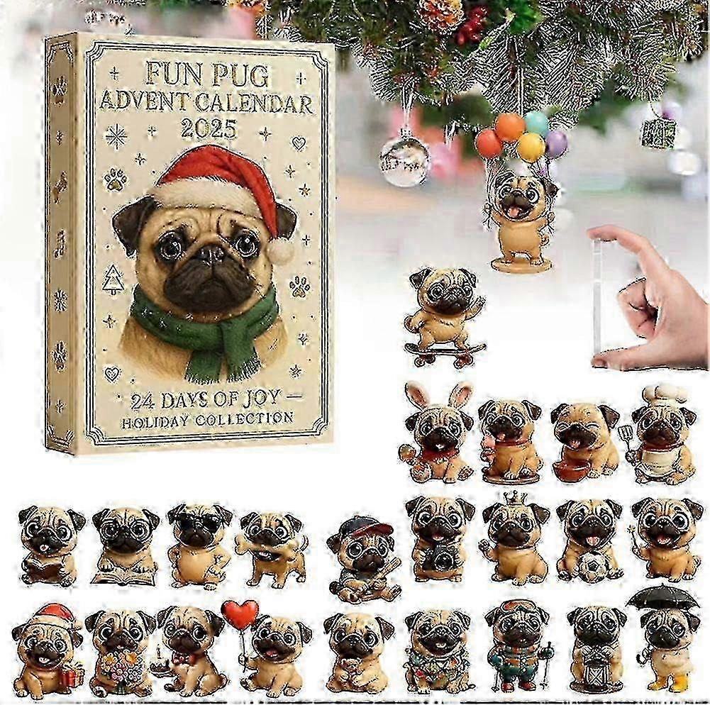 Pug Advent Calendar 2025, 24 Days Christmas Advent Calendar with Cute Pug Dog Hanging Ornaments, Funny 24 Days Christmas Countdown Cal