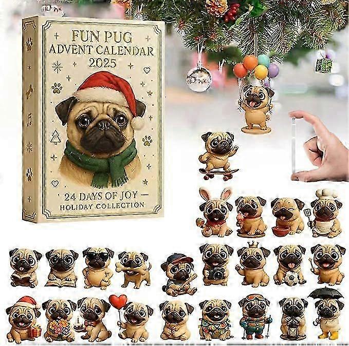 Pug Advent Calendar 2025, 24 Days Christmas Advent Calendar with Cute Pug Dog Hanging Ornaments, Funny 24 Days Countdown to Christmas Calendar, Holida