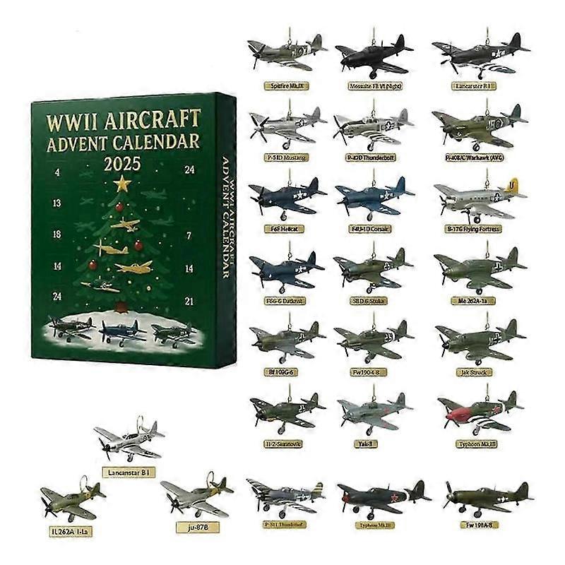 Aircrafts Advents Calendar 2025 Unique Collectible 2d Plane Ornaments. for Christmas Tree Decoration