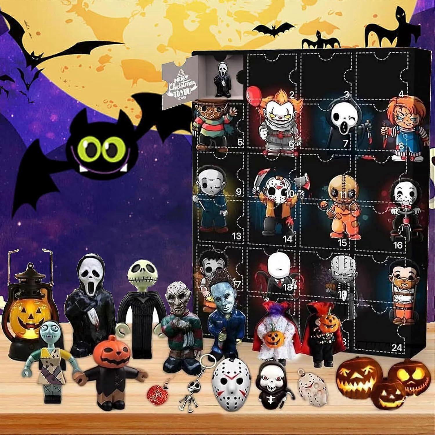 2025 Halloween Advent Calendar 24 Horror Movie Figures & Dolls Collectible Countdown Gift for Family & Friends