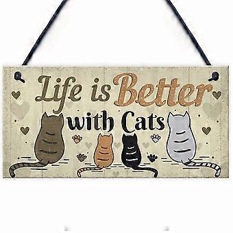 Η ζωή είναι καλύτερη με ξύλινη πινακίδα τυπωμένη γάτα
