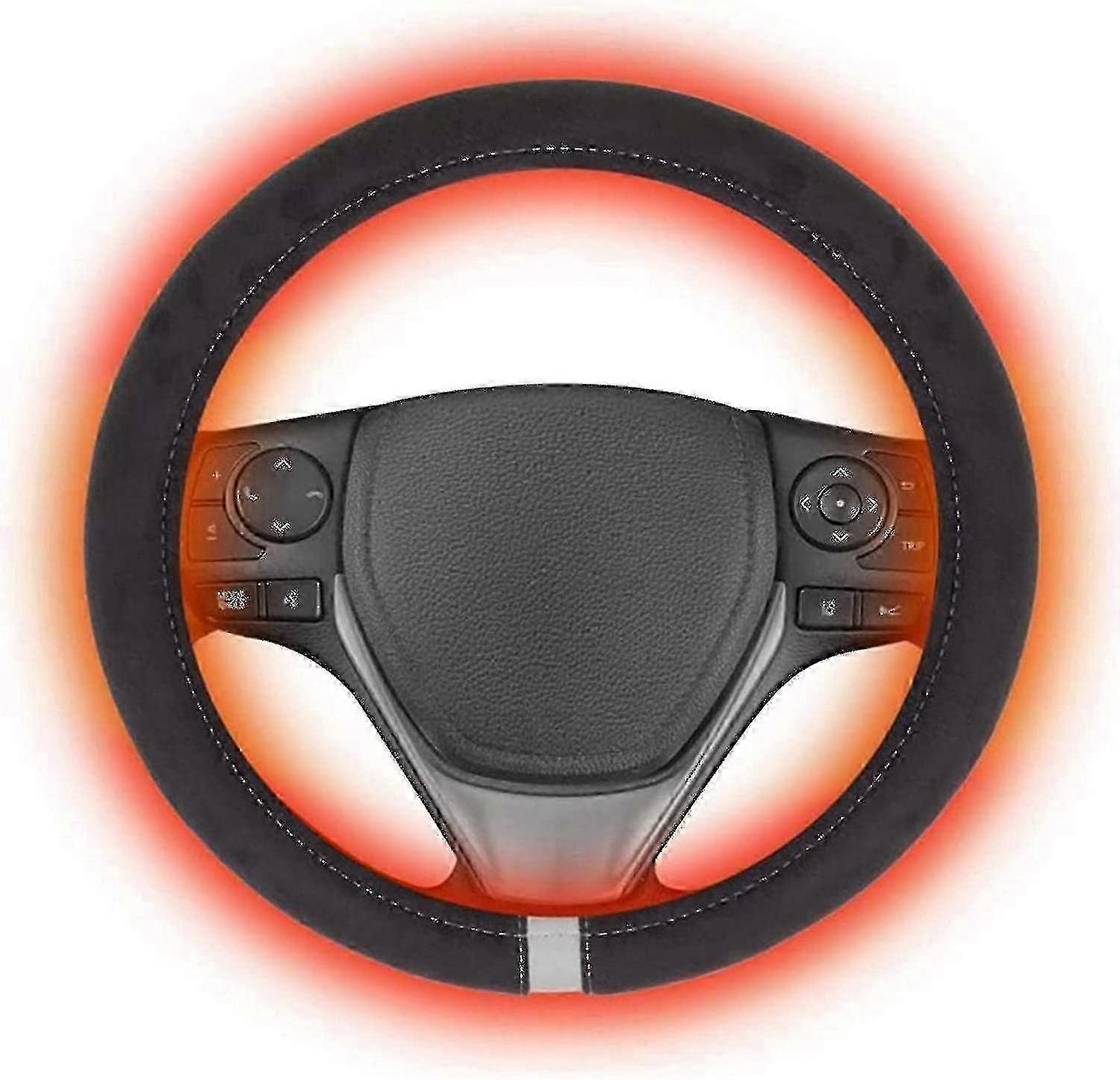15in 12V Heated Steering Wheel Cover - Tangle-Free Design for Warm Hands in Car